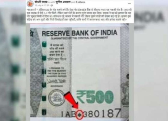 ಜುಲೈ 31, 2023ರಂದು ಹಿಂದೂಸ್ತಾನ್ ಟೈಮ್ಸ್ 500 ರೂ. ನೋಟುಗಳಲ್ಲಿ ಸ್ಟಾರ್ ಚಿಹ್ನೆ ಇರುವುದರ ಕುರಿತು ಸುದ್ದಿ ಪ್ರಕಟಿಸಿತ್ತು. ಸುದ್ದಿಯಲ್ಲಿ 500 ರೂ. ಕರೆನ್ಸಿ ನೋಟಿನಲ್ಲಿ ಸ್ಟಾರ್ ಚಿಹ್ನೆಯಿದ್ದರೆ ಭಯಪಡಬೇಡಿ. ಅದು ನಕಲಿ ಅಲ್ಲ ಎಂದು ಆರ್ಬಿಐ ಖಚಿತಪಡಿಸಿರುವುದಾಗಿ ಹೇಳಿತ್ತು.