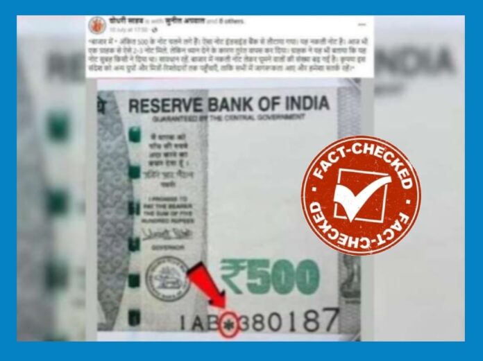 “ಸ್ಟಾರ್ ಚಿಹ್ನೆಯಿರುವ 500 ರೂಪಾಯಿಯ ಕರೆನ್ಸಿ ನೋಟುಗಳು ನಕಲಿಯಾಗಿದ್ದು, ಮಾರುಕಟ್ಟೆಯಲ್ಲಿ ಹರಿದಾಡುತ್ತಿವೆ” ಎಂಬ ಸಂದೇಶವೊಂದು ಸಾಮಾಜಿಕ ಜಾಲತಾಣಗಳಲ್ಲಿ ವೈರಲ್ ಆಗಿದೆ.