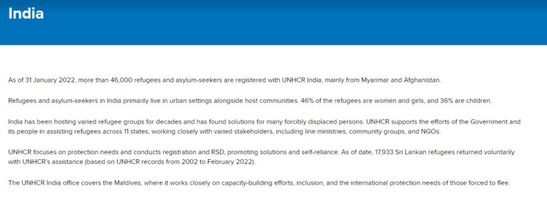 ಎನ್‌ಹೆಚ್‌ಸಿಆರ್‌ ಪ್ರಕಾರ, 31 ಜನವರಿ 2022ರಂತೆ, 46,000 ಕ್ಕೂ ಹೆಚ್ಚು ನಿರಾಶ್ರಿತರು ಮತ್ತು ಮುಖ್ಯವಾಗಿ ಮ್ಯಾನ್ಮಾರ್ ಮತ್ತು ಅಫ್ಘಾನಿಸ್ತಾನದಿಂದ ಆಶ್ರಯ ಹುಡುಕಿಕೊಂಡು ಬಂದವರು ಭಾರತದಲ್ಲಿ ನೋಂದಾಯಿಸಲ್ಪಟ್ಟಿದ್ದಾರೆ. ಆದರೆ, ಭಾರತದಲ್ಲಿನ ರೋಹಿಂಗ್ಯಾ ಶಿಬಿರಗಳಲ್ಲಿ ಎಷ್ಟು ಹೆರಿಗೆಗಳು ನಡೆಯುತ್ತಿವೆ ಎಂಬುವುದರ ಕುರಿತು ಯಾವುದೇ ಅಧಿಕೃತ ಮಾಹಿತಿ ಲಭ್ಯವಾಗಿಲ್ಲ.
