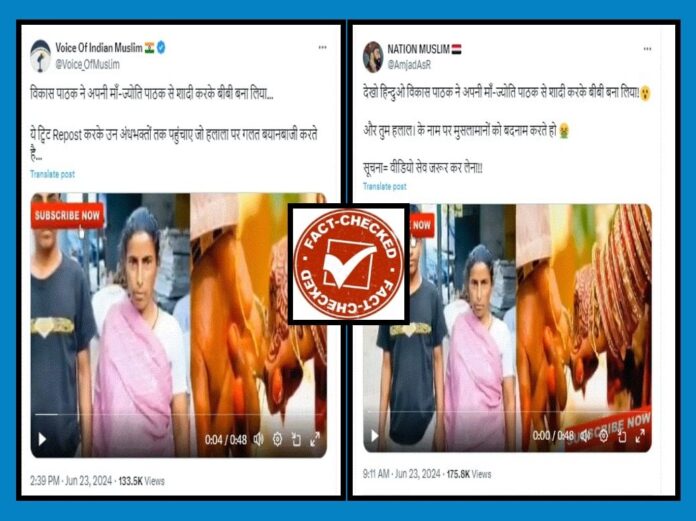ಮೂರು ವರ್ಷಗಳ ಹಿಂದೆ ಅಪಘಾತದಲ್ಲಿ ಪತಿ ಸಾವನ್ನಪ್ಪಿದ ನಂತರ ವಿಕಾಸ್ ಪಾಠಕ್ ಎಂಬ ವ್ಯಕ್ತಿ ತನ್ನ ತಾಯಿ ಜ್ಯೋತಿ ಪಾಠಕ್ ಅವರನ್ನು ವಿವಾಹವಾದರು ಎಂದು ಪ್ರತಿಪಾದಿಸಿ ವಿಡಿಯೋವೊಂದನ್ನು ಸಾಮಾಜಿಕ ಮಾಧ್ಯಮದಲ್ಲಿ ಹಂಚಿಕೊಳ್ಳಲಾಗಿದೆ.