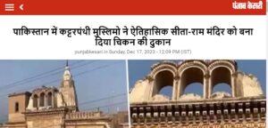 2023ರ ಡಿಸೆಂಬರ್ 17 ರಂದು ‘ಪಂಜಾಬ್ ಕೇಸರಿ’ಯಲ್ಲಿ ಪ್ರಕಟವಾಗಿದ್ದ ವರದಿಯಲ್ಲಿ, “ಪಾಕಿಸ್ತಾನದ ಅಹ್ಮದ್ಪುರ್ ಸಿಯಾಲ್ನಲ್ಲಿ ಐತಿಹಾಸಿಕ ಸೀತಾರಾಮ ಮಂದಿರ ಇತ್ತು. ಅದನ್ನು ಹಾಳುಗೆಡವಿ ಚಿಕನ್ ಅಂಗಡಿಯಾಗಿ ಪರಿವರ್ತನೆ ಮಾಡಲಾಗಿದೆ. ಈ ದೇಗುಲವನ್ನು ಶತಮಾನಗಳ ಹಿಂದೆ ನಿರ್ಮಿಸಲಾಗಿತ್ತು. ಇದಕ್ಕೆ ಐತಿಹಾಸಿಕ ಮಾತ್ರವಲ್ಲ, ಸಾಂಸ್ಕೃತಿಕ ಮಹತ್ವವೂ ಇದೆ ಎಂದು ಹೇಳಲಾಗಿದೆ.
