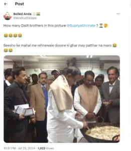 ರಾಹುಲ್ ಗಾಂಧಿಯ ಹೇಳಿಕೆಗೆ ಪ್ರತಿಯಾಗಿ ಸಾಮಾಜಿಕ ಮಾಧ್ಯಮಗಳಲ್ಲಿ ಪೋಸ್ಟ್ಗಳನ್ನು ಹಂಚಿಕೊಂಡಿದ್ದ ಅನೇಕ ಬಳಕೆದಾರರು ” ಯುಪಿಎ ಸರ್ಕಾರದ ಅವಧಿಯಲ್ಲಿ ಪಿ.ಚಿದಂಬರಂ ಹಣಕಾಸು ಸಚಿವರಾಗಿದ್ದಾಗ ಬಜೆಟ್ ಮಂಡನೆಗೂ ಮುನ್ನ ನಡೆದ ಹಲ್ವಾ ಸಮಾರಂಭದಲ್ಲಿ ಎಷ್ಟು ದಲಿತರಿದ್ದರು? ಎಂದು ಪ್ರಶ್ನಿಸಿದ್ದರು. ಅಂದರೆ, ಯುಪಿಎ ಸರ್ಕಾರದ ಅವಧಿಯಲ್ಲೂ ಹಲ್ವಾ ಸಮಾರಂಭದಲ್ಲಿ ಒಬಿಸಿ, ಎಸ್ಸಿ, ಎಸ್ಟಿ ಸಮುದಾಯಗಳ ಯಾವೊಬ್ಬ ಅಧಿಕಾರಿಯೂ ಭಾಗಿಯಾಗಿರಲಿಲ್ಲ ಎಂದು ಪ್ರತಿಪಾದಿಸಿದ್ದರು.