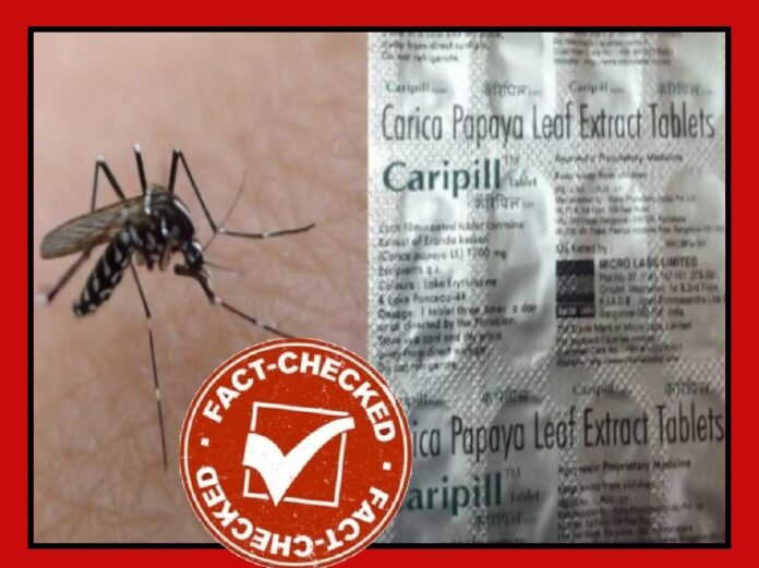 FACT CHECK : CARIPILL ಮಾತ್ರೆ ಸೇವನೆಯಿಂದ ಡೆಂಘೀ ಸೋಂಕು ನಿವಾರಿಸಬಹುದು ಎಂಬುವುದು ಸುಳ್ಳು
