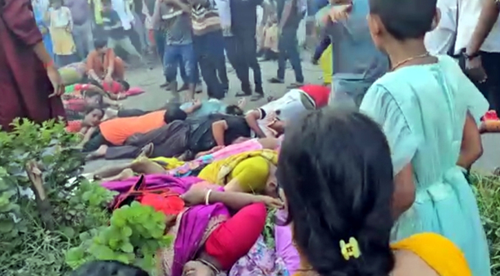 ಎಕ್ಸ್ ನಲ್ಲಿ ಹಂಚಿಕೊಳ್ಳಲಾದ ವಿಡಿಯೋದಲ್ಲಿ ಅನೇಕ ಮಹಿಳೆಯರು ರಸ್ತೆಯ ಮೇಲೆ ಬಿದ್ದಿದ್ದು, ಜನರು ಅವರನ್ನು ಎಬ್ಬಿಸಲು ಪ್ರಯತ್ನಿಸುತ್ತಿರುವುದನ್ನು ನೋಡಬಹುದು. ಹಲವು ಮಹಿಳೆಯರು ನಿತ್ರಾಣರಾಗಿದ್ದು, ನಿಲ್ಲಲೂ ಸಾಧ್ಯವಾಗದ ಸ್ಥಿತಿಯಲ್ಲಿರುವುದು ವಿಡಿಯೋದಲ್ಲಿ ಇದೆ.
