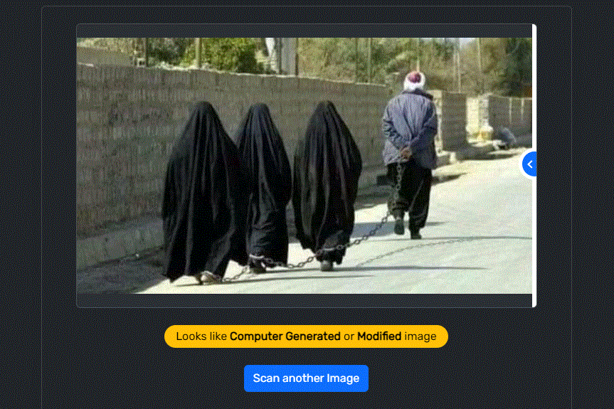 ಮೂವರು ಬುರ್ಖಾಧಾರಿ ಮಹಿಳೆಯರ ಕಾಲಿಗೆ ಸರಪಳಿ ಬಿಗಿದು, ಆ ಸರಪಳಿಯ ಒಂದು ತುದಿಯನ್ನು ಹಿಡಿದುಕೊಂಡು ವ್ಯಕ್ತಿಯೊಬ್ಬರು ನಡೆಯುತ್ತಿರುವ ಫೋಟೋವೊಂದು ಸಾಮಾಜಿಕ ಜಾಲತಾಣಗಳಲ್ಲಿ ವೈರಲ್ ಆಗಿದೆ.