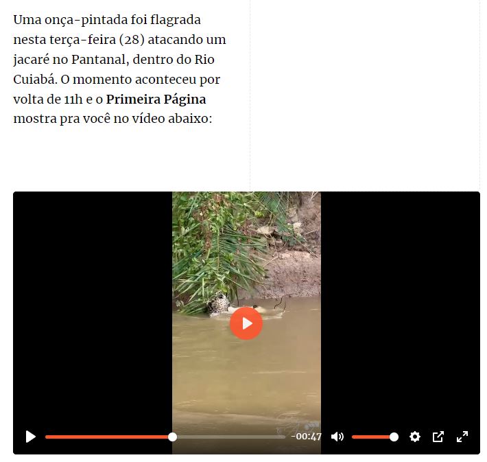 ಇವುಗಳ ಆಧಾರದಲ್ಲಿ ನಾವು ಇನ್ನಷ್ಟು ಶೋಧ ನಡೆಸಿದ್ದು, ಪ್ರೀಮಿಯರ್ ಅಪಾಗಿನಾ ಹೆಸರಿನ ವೆಬ್ಸೈಟ್ ನಲ್ಲಿ ಮೇ 28, 2024ರಂದು ಮಾಡಿದ ಪೋಸ್ಟ್ ಲಭ್ಯವಾಗಿದ್ದು ಜಾಗ್ವಾರ್ ಕೂಯ್ಬಾ ನದಿಯಲ್ಲಿ ಮೊಸಳೆಯನ್ನು ಹಿಡಿದಿರುವುದು ಎಂದಿದೆ. (ಅನುವಾದಿಸಲಾಗಿದೆ) ಈ ಪೋಸ್ಟ್ ನಲ್ಲೂ ವೈರಲ್ ವಿಡಿಯೋವನ್ನು ಅಪ್ಲೋಡ್ ಮಾಡಿರುವುದನ್ನು ನೋಡಬಹುದು. ಕೂಯ್ಬಾ ನದಿಯು ದಕ್ಷಿಣ ಅಮೆರಿಕದ ಬ್ರೆಜಿಲ್ ನಲ್ಲಿದೆ ಎಂಬುದು ಗಮನಾರ್ಹ. ಚಿರತೆ ಮೊಸಳೆಯನ್ನು ಬೇಟಿಯಾಡಿದ ದೃಶ್ಯವು ಬಂಟ್ವಾಳದಲ್ಲಿ ನಡೆದಿದ್ದಲ್ಲ ಎಂಬುದು ಸ್ಪಷ್ಟವಾಗಿದೆ.