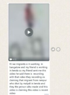 ಉತ್ತರ ಪ್ರದೇಶದ ರಾಮ್ಪುರ ಮೂಲದ ಪೇಂಟರ್ನನ್ನು ಕೇರಳದಲ್ಲಿ ಗುಂಡಿಕ್ಕಿ ಹತ್ಯೆ ಮಾಡಲಾಗಿದೆ ಎಂಬ ಸಂದೇಶದೊಂದಿಗೆ ವಿಡಿಯೋವೊಂದು ವೈರಲ್ ಆಗಿದೆ.