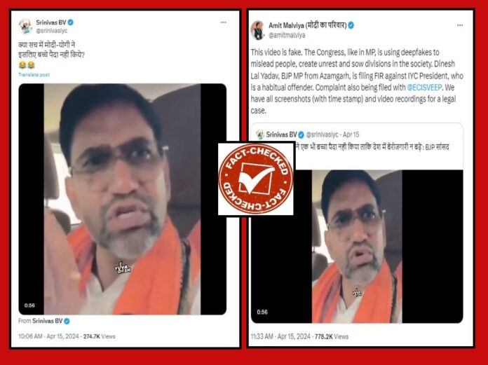 ಬಿವಿ ಶ್ರೀನಿವಾಸ್ ಅವರ ಪೋಸ್ಟ್ಗೆ ಪ್ರತಿಕ್ರಿಯಿಸಿದ್ದ ಬಿಜೆಪಿ ಐಟಿ ಸೆಲ್ ಮುಖ್ಯಸ್ಥ ಅಮಿತ್ ಮಾಳವಿಯಾ ಅವರು, “ಜನರನ್ನು ದಾರಿ ತಪ್ಪಿಸಲು ಕಾಂಗ್ರೆಸ್ ಡೀಪ್ ಫೇಕ್ಗಳನ್ನು ಬಳಸುತ್ತಿದೆ. ಈ ಮೂಲಕ ಸಮಾಜದಲ್ಲಿ ಅಶಾಂತಿ ಸೃಷ್ಟಿಸಿ ಒಡಕು ಮೂಡಿಸುತ್ತಿದ್ದಾರೆ. ಆಝಂಗಢದ ಬಿಜೆಪಿ ಸಂಸದರು ಯುವ ಕಾಂಗ್ರೆಸ್ ಅಧ್ಯಕ್ಷರ ವಿರುದ್ಧ ಎಫ್ಐಆರ್ ದಾಖಲಿಸಲಿದ್ದಾರೆ ಮತ್ತು ಈ ವಿಷಯವನ್ನು ಭಾರತದ ಚುನಾವಣಾ ಆಯೋಗದೊಂದಿಗೆ ದೂರು ನೀಡಲಿದ್ದಾರೆ” ಎಂದಿದ್ದರು.