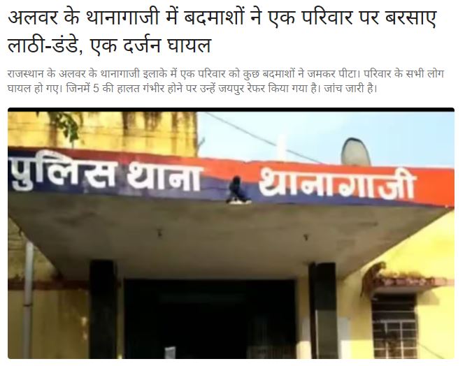 ಹಿಂದಿ ಸುದ್ದಿ ತಾಣ ‘ಹಿಂದೂಸ್ತಾನ್’ ಜನವರಿ 19,2024ರಂದು ಈ ಸುದ್ದಿ ಪ್ರಕಟಿಸಿದೆ. ಇಲ್ಲಿಯೂ ಘಟನೆ ನಡೆದಿರುವುದು ಅಲ್ವಾರ್‌ನಲ್ಲೇ, ಆದರೆ ಇದು ಜಮೀನು ವಿವಾದಕ್ಕೆ ಸಂಬಂಧಿಸಿದ ಕೌಟುಂಬಿಕ ಕಲಹ ಎಂದು ತಿಳಿಸಲಾಗಿದೆ.