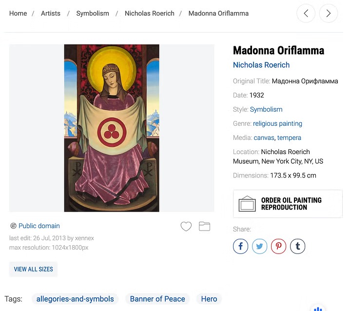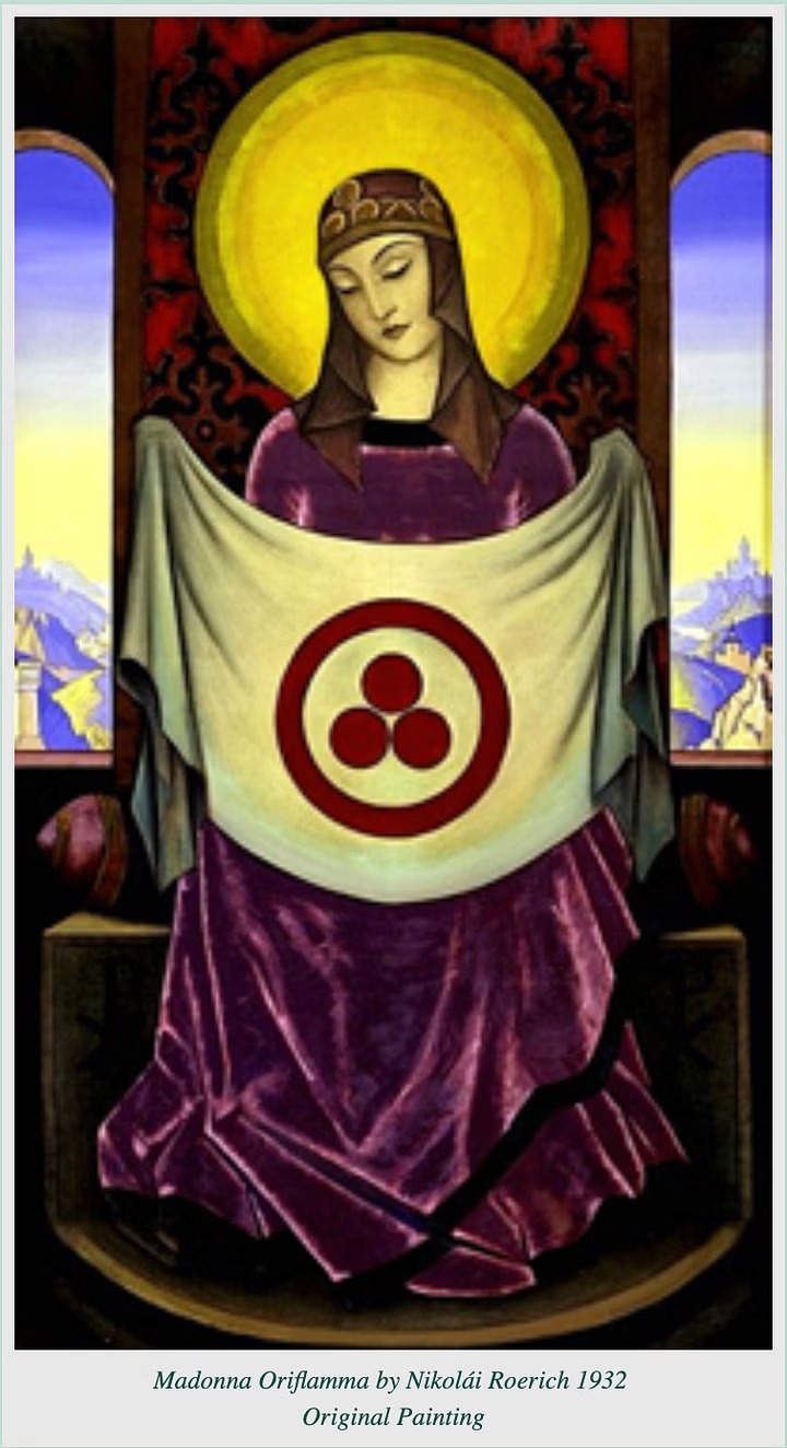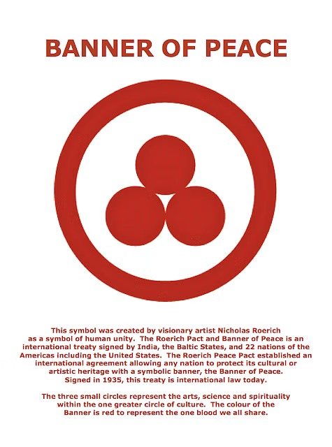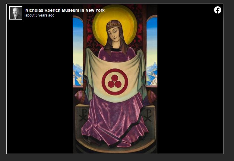 svdejala.blogspot.com ಎಂಬ ಬ್ಲಾಗ್ ಪೋಸ್ಟ್‌ನಲ್ಲಿ ಆಗಸ್ಟ್ 8, 2017ರಂದು ಈ ಕುರಿತು ಮಾಹಿತಿ ಪ್ರಕಟಿಸಿಲಾಗಿದೆ. ಅದರಲ್ಲಿ ಹೇಳಿರುವ ಪ್ರಕಾರ, ಈ ಚಿತ್ರವನ್ನು ನಿಕೋಲಸ್ ರೋರಿಚ್ ಅವರು 1932 ರಲ್ಲಿ ರಚಿಸಿದ್ದಾರೆ. ಚಿತ್ರದಲ್ಲಿ ಮಹಿಳೆ ಹಿಡಿದಿರುವ ಮೂರು ಚುಕ್ಕೆಗಳಿರುವ ಬ್ಯಾನರ್ ಅನ್ನು ‘ಬ್ಯಾನರ್ ಆಫ್ ಪೀಸ್’ (Banner of peace)ಎಂದು ಕರೆಯಲಾಗುತ್ತದೆ.