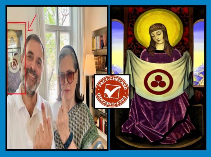 ಫ್ಯಾಕ್ಟ್‌ಚೆಕ್ : ಅಸಲಿಗೆ ರಾಹುಲ್ ಗಾಂಧಿಯ ಸೆಲ್ಫಿಯಲ್ಲಿ ಹಿಂಬದಿ ಕಂಡು ಬಂದ ಚಿತ್ರ ಕ್ರೈಸ್ತ ಧರ್ಮಕ್ಕೆ ಸಂಬಂಧಿಸಿದಲ್ಲ. ಅದು “ರಷ್ಯಾದ ವರ್ಣಚಿತ್ರಕಾರ ನಿಕೋಲಸ್ ರೋರಿಚ್ ಅವರು ರಚಿಸಿರುವ ‘ಮಡೋನಾ ಒರಿಫ್ಲಾಮಾ‘ ಎಂಬ ಶೀರ್ಷಿಕೆಯ ಚಿತ್ರವಾಗಿದೆ. ಚಿತ್ರದಲ್ಲಿರುವ ಮಹಿಳೆ ಶಾಂತಿಯ ಸಂದೇಶ ಸಾರುವ ಬ್ಯಾನರ್ ಹಿಡಿದಿದ್ದಾಳೆ”.