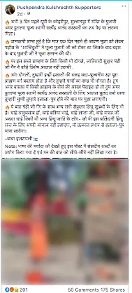 ಇನ್ನು ಹಲವಾರು ಟ್ವಿಟ್ಟರ್ ಹಾಗೂ ಫೇಸ್ಬುಕ್ ಬಳಕೆದಾರರು ಅರ್ಚಕನನ್ನು ಕೊಲ್ಲಲಾಗಿದೆ ಎಂದು ಶಿರ್ಷಿಕೆ ನೀಡಿ ಚಿತ್ರವನ್ನು ಹಂಚಿಕೊಂಡಿದ್ದಾರೆ.