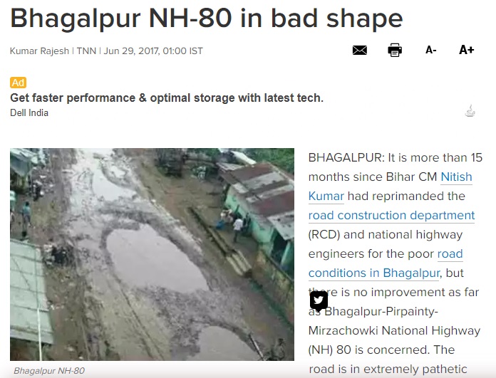 Spot the road contest @MORTHIndia @nitin_gadkari @rsprasad @ShahnawazBJP #NH80 Bhagalpur-Pirpainti @PMOIndia @narendramodi pic.twitter.com/HjpSI1XQlb