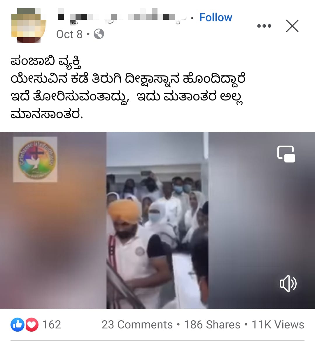 ಪಂಜಾಬ್‌‌ನ ನೂತನ ಮುಖ್ಯಮಂತ್ರಿಯಾಗಿರುವ ಚರಣ್‌‌ಜಿತ್‌‌ ಸಿಂಗ್ ಚನ್ನಿ ಅವರು ಮತಾಂತರವಾಗುತ್ತಿದ್ದಾರೆ ಎಂದು ಪ್ರತಿಪಾದಿಸಿ ಸಾಮಾಜಿಕ ಜಾಲತಾಣದಲ್ಲಿ ವಿಡಿಯೊವೊಂದು ಹರಿದಾಡುತ್ತಿದೆ. ವೈರಲ್‌ ವಿಡಿಯೊದಲ್ಲಿ ಸಿಖ್‌ ವ್ಯಕ್ತಿಯಂತೆ ಕಾಣುತ್ತಿರುವ ವ್ಯಕ್ತಿಯೊಬ್ಬರು ಕ್ರೈಸ್ತ ಪಾದ್ರಿಯಿಂದ ಬ್ಯಾಪ್ಟಿಸಂ(ದೀಕ್ಷಾಸ್ನಾನ) ಆಗುತ್ತಿರುವುದನ್ನು ನೋಡಬಹುದಾಗಿದೆ.