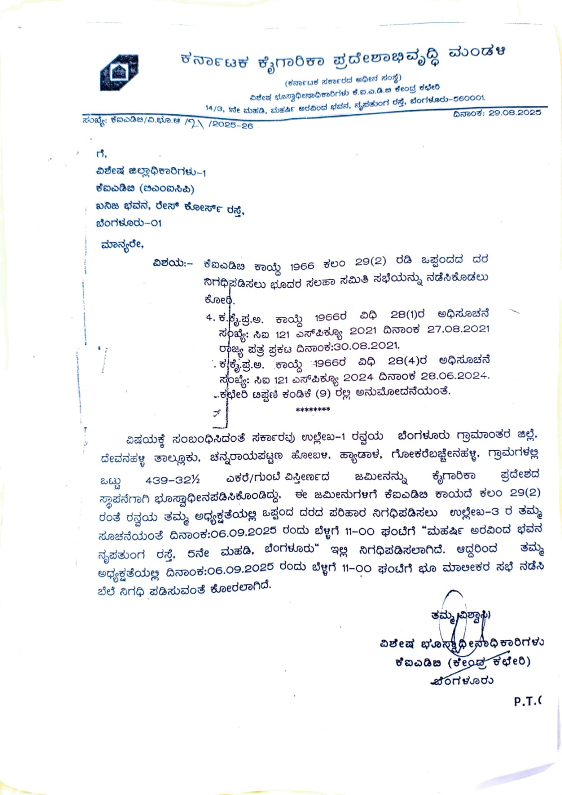 ಆದರೆ, ಇದೀಗ ಹ್ಯಾಡಾಳ, ಗೋಕರೆಬಚ್ಚೇನಹಳ್ಳಿ ಗ್ರಾಮಗಳ 439 ಎಕರೆ ಭೂ ಸ್ವಾಧೀನಕ್ಕೆ ಸಂಬಂಧಿಸಿದಂತೆ  ಸೆಪ್ಟೆಂಬರ್ 6ರಂದು ದರ ನಿಗದಿ ಸಭೆ ಕರೆಯಲಾಗಿದೆ. ಈ ಕುರಿತು ರೈತರಿಗೆ ನೋಟಿಸ್ ನೀಡಲಾಗಿದೆ.