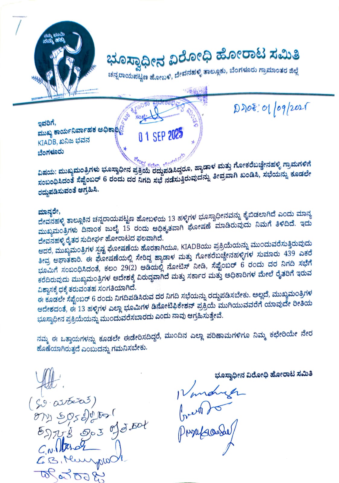 ಮೂರೂವರೆ ವರ್ಷಗಳ ನಿರಂತರ ಹೋರಾಟದ ಫಲವಾಗಿ ಬೆಂಗಳೂರು ಗ್ರಾಮಾಂತರ ಜಿಲ್ಲೆ ದೇವನಹಳ್ಳಿ ತಾಲೂಕಿನ ಚನ್ನರಾಯಪಟ್ಟಣ ಹೋಬಳಿ ವ್ಯಾಪ್ತಿಯ 13 ಹಳ್ಳಿಗಳ ರೈತರ 1,777 ಎಕರೆ ಭೂಸ್ವಾಧೀನವನ್ನು 2025 ಜುಲೈ 15ರಂದು ಸರ್ಕಾರ ಕೈಬಿಟ್ಟಿತ್ತು. ಈ ಬಗ್ಗೆ ಸ್ವತಃ ಸಿಎಂ ಸಿದ್ದರಾಮಯ್ಯ ಮಾಧ್ಯಮಗಳ ಮುಂದೆ ಅಧಿಕೃತ ಘೋಷಣೆ ಮಾಡಿದ್ದರು.