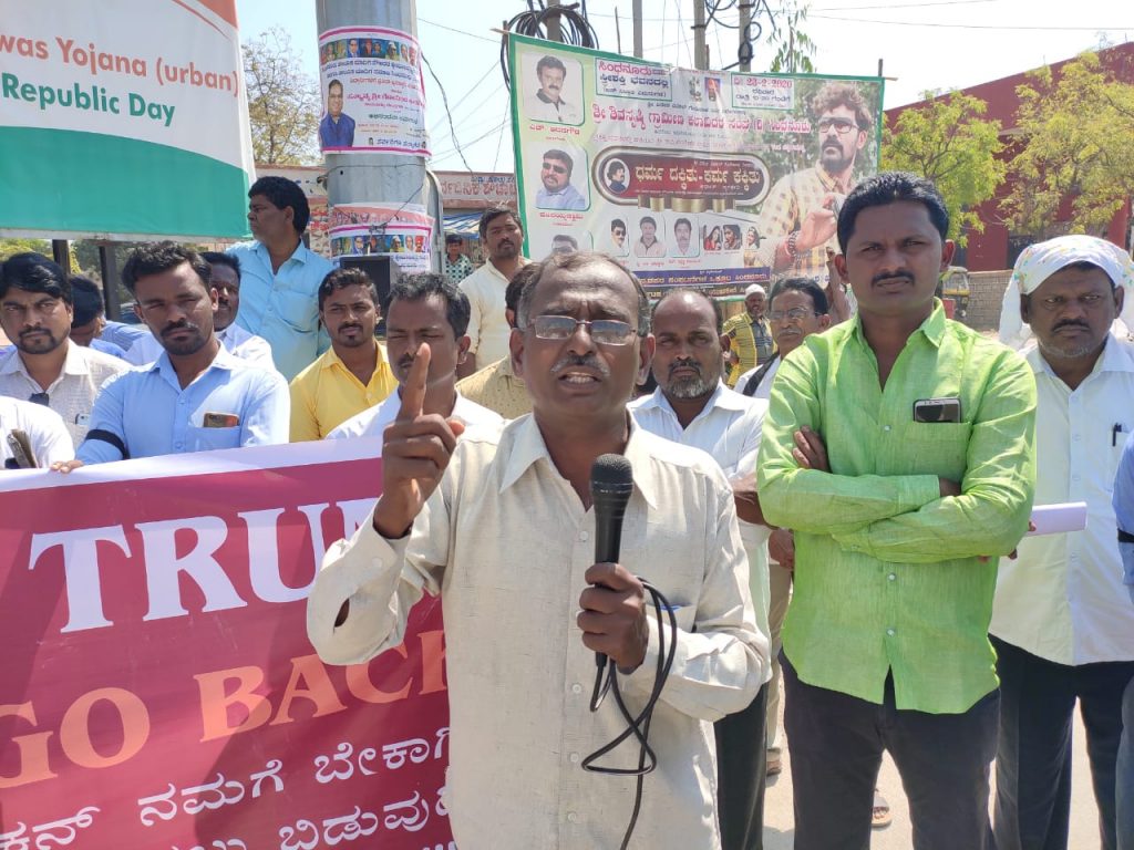 ಯುವ ಹೋರಾಟಗಾರ ನಾಗರಾಜ್ ಪೂಜಾರ್ ಮಾತನಾಡಿ “ದೇಶವನ್ನು ಲೂಟಿ ಹೊಡೆಯಲು ಬರುತ್ತಿರುವ ಟ್ರಂಪ್ ಭೇಟಿಗೆ ನೂರಾರು ಕೋಟಿ ಖರ್ಚು ಮಾಡುತ್ತಿರುವ ಮೋದಿ ಸರ್ಕಾರದ ನಡೆಯನ್ನು ವಿರೋಧಿಸುತ್ತೇವೆ” ರೈತ ವಿರೋಧಿ ಟ್ರಂಪ್ಗೆ ನಮ್ಮ ನೆಲವನ್ನು ಲೂಟಿ ಹೊಡೆಯಲು ಬಿಡುವುದಿಲ್ಲ ಎಂದು ಹೇಳಿದ್ದಾರೆ.