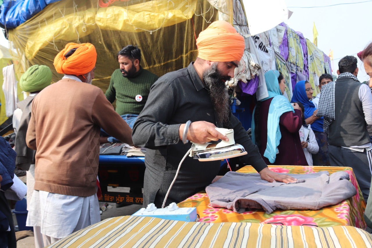 ತರನ್ ತಾರನ್ ಸಾಹಿಬ್ ಜಿಲ್ಲೆಯಲ್ಲಿ ಭತ್ತ, ಜೋಳ, ಕಡಲೆ ಮತ್ತು ಕಬ್ಬು ಬೆಳೆಯುವ ಬೂಟಾ ಸಿಂಗ್, ಪ್ರತಿಭಟನಾ ಸ್ಥಳದಲ್ಲಿ ಒಂದೂವರೆ ತಿಂಗಳು ವಾಷಿಂಗ್ ಮಷಿನ್ಗಳನ್ನು ಇಟ್ಟು ರೈತರ ಬಟ್ಟೆ ಸ್ವಚ್ಛಗೊಳಿಸುತ್ತಿದ್ದರು. ದಿನೇ ದಿನೇ ವಾಷಿಂಗ್ ಮಷಿನ್ಗಳ ಸಂಖ್ಯೆ ಹೆಚ್ಚಾದ ಕಾರಣ ಮತ್ತು ತೀವ್ರ ಚಳಿ ಮತ್ತು ಮಂಜಿನಲ್ಲಿ ಬೇಗ ಬಟ್ಟೆ ಒಣಗದಿರುವುದನ್ನು ಗಮನಿಸಿ ಐರನ್ ಸೇವೆ ನೀಡುತ್ತಿದ್ದಾರೆ.