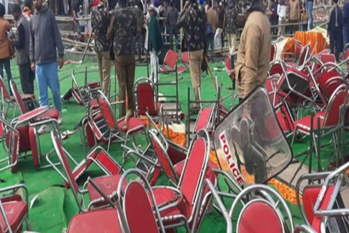 ಹರಿಯಾಣ ಸಿಎಂ ಮನೋಹರ್ ಲಾಲ್ ಕಟ್ಟರ್ ಇಂದು ಕರ್ನಾಲ್ ಬಳಿಯ ಕೈಮ್ಲಾ ಎಂಬ ಗ್ರಾಮಕ್ಕೆ ಭೇಟಿ ನೀಡಿ ಕೇಂದ್ರ ಸರ್ಕಾರ ಜಾರಿಗೊಳಿಸಿರುವ ಮೂರು ಕೃಷಿ ಕಾಯ್ದೆಗಳ ಉಪಯೋಗಗಳ ಬಗ್ಗೆ ಭಾಷಣ ಮಾಡಬೇಕಿತ್ತು. ಮಹಾಪಂಚಾಯತ್ ಎಂಬ ಹೆಸರಿನ ಆ ಕಾರ್ಯಕ್ರಮದಲ್ಲಿ ರೈತರ ಜೊತೆ ಸಂವಾದ ನಡೆಸಬೇಕಿತ್ತು. ಆದರೆ ಪೊಲೀಸರಿಗೆ ಚಳ್ಳೆ ಹಣ್ಣು ತಿನ್ನಿಸಿ ವೇದಿಕೆಗೆ ನುಗ್ಗಿದ ಕಾಯ್ದೆ ವಿರೋಧಿ ರೈತರು ಕೃಷಿ ಕಾಯ್ದೆಗಳ ವಿರುದ್ಧ, ಕೇಂದ್ರ ಸರ್ಕಾರ, ಬಿಜೆಪಿ ವಿರುದ್ಧ ಘೋಷಣೆ ಕೂಗಿ ಗದ್ದಲವೆಬ್ಬಿಸಿದ್ದಾರೆ. ಕುರ್ಚಿಗಳನ್ನು ಚೆಲ್ಲಾಪಿಲ್ಲಿಗೊಳಿಸಿದ್ದಾರೆ. ಇದರಿಂದ ಸಿಎಂ ಕಾರ್ಯಕ್ರಮವನ್ನೆ ರದ್ದುಗೊಳಿಸಿ ಮುಖಭಂಗಕ್ಕೊಳಾಗಾಗಿದ್ದಾರೆ.