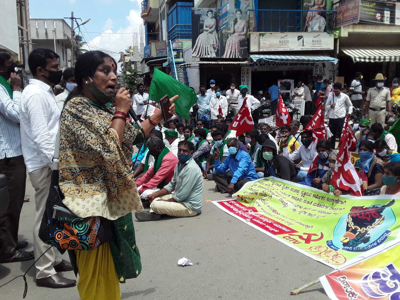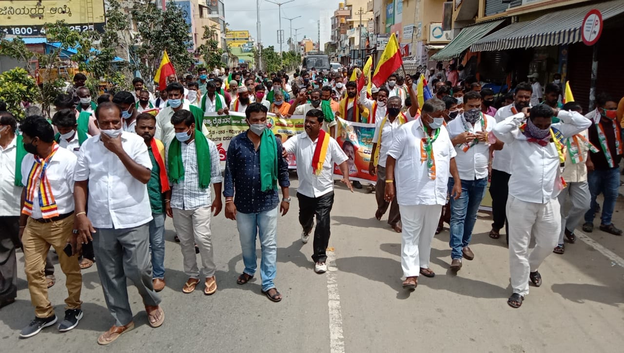 ಟೌನ್‌ ಹಾಲ್ ಎದುರು ಜಮಾಯಿಸಿದ ಸಾವಿರಾರು ಕಾರ್ಯಕರ್ತರು ಕೇಂದ್ರ ಮತ್ತು ರಾಜ್ಯ ಸರ್ಕಾರದ ವಿರುದ್ಧ ಘೋಷಣೆ ಕೂಗಿ ಆಕ್ರೋಶ ವ್ಯಕ್ತಪಡಿಸಿದ್ದಾರೆ. ಕೂಡಲೇ ರೈತವಿರೋಧಿ ಮಸೂದೆಗಳನ್ನು ಹಿಂಪಡೆಯಬೇಕೆಂದು ಆಗ್ರಹಿಸಿ ಫ್ರೀಡಂ ಪಾರ್ಕ್‌ವರೆಗೂ ಬೃಹತ್ ಮೆರವಣಿಗೆ ನಡೆಸಿದ್ದಾರೆ.