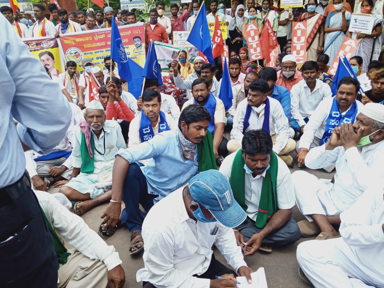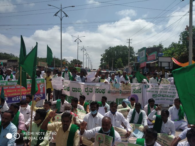 ಕೇಂದ್ರ ಮತ್ತು ರಾಜ್ಯ ಸರ್ಕಾರಗಳು ಜಾರಿಗೊಳಿಸಲು ಹೊರಟಿರುವ ಕೃಷಿ ಮಸೂದೆಗಳ ವಿರುದ್ಧ ಇಂದು ಆರಂಭವಾಗಿರುವ ಕರ್ನಾಟಕ ಬಂದ್ ಯಶಸ್ವಿಯಾಗಿದ್ದು, ರಾಜ್ಯಾದ್ಯಂತ ರೈತರ ಹೋರಾಟಕ್ಕೆ ವ್ಯಾಪಕ ಬೆಂಬಲ ವ್ಯಕ್ತವಾಗಿದೆ.