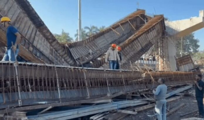 ಹಳೆಯ ಸೇತುವೆಗೆ ಸಮಾನಾಂತರವಾಗಿ ಹೊಸ ಸೇತುವೆಯನ್ನು ನಿರ್ಮಿಸಲಾಗುತ್ತಿರುವ ಕೈಲಾಶ್ ರಸ್ತೆಯಲ್ಲಿ ಶುಕ್ರವಾರ ಬೆಳಿಗ್ಗೆ 8 ಗಂಟೆ ಸುಮಾರಿಗೆ ಈ ಘಟನೆ ಸಂಭವಿಸಿದೆ. ಅಧಿಕಾರಿಗಳ ಪ್ರಕಾರ, ಗಿರ್ಡರ್‌ನ ಮೇಲಿನ ಭಾಗವನ್ನು ಹಿಡಿದಿಡಲು ಎರಡು ಕಂಬಗಳ ನಡುವೆ ಇರಿಸಲಾದ ತಾತ್ಕಾಲಿಕ ಆಧಾರವು ಇದ್ದಕ್ಕಿದ್ದಂತೆ ಜಾರಿಬಿದ್ದು, ಇಡೀ ರಚನೆಯು ಕುಸಿದು ಬಿದ್ದಿದೆ. ಗಿರ್ಡರ್ ಬಳಿ ನಿಂತಿದ್ದ ಕಾರ್ಮಿಕರು ಕೆಳಗೆ ಸಿಲುಕಿಕೊಂಡು ಗಾಯಗೊಂಡಿದ್ದಾರೆ.