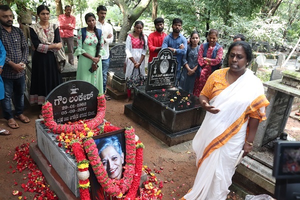 ದಿಟ್ಟ ಪತ್ರಕರ್ತೆ ಗೌರಿ ಲಂಕೇಶ್‌ ಅವರ ಐದನೇ ವರ್ಷದ ಸ್ಮರಣೆಯ ಭಾಗವಾಗಿ, ಗೌರಿಯವರ ಸಮಾಧಿಗೆ ಹೋರಾಟಗಾರರು, ಗೌರಿಯ ಒಡನಾಡಿಗಳು ಹಾಗೂ ಜನಪರ ಆಶಯಗಳಿಗಾಗಿ ದುಡಿಯುತ್ತಿರುವವರು ನಮನ ಸಲ್ಲಿಸಿದರು.
