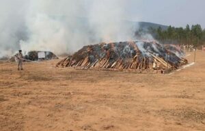 Aerial shot of the massive haul of Ganja being burnt by AP police. Police destroyed 200 lac kgs of Ganja, estimated to be valued at Rs 500 crores! pic.twitter.com/984wIO0TYr