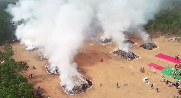Aerial shot of the massive haul of Ganja being burnt by AP police. Police destroyed 200 lac kgs of Ganja, estimated to be valued at Rs 500 crores! pic.twitter.com/984wIO0TYr