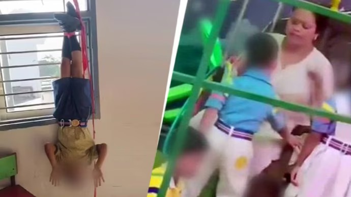 ಒಂದನೇ ವೀಡಿಯೊದಲ್ಲಿ, 2 ನೇ ತರಗತಿಯ ವಿದ್ಯಾರ್ಥಿಯನ್ನು ಹಗ್ಗಗಳಿಂದ ಕಟ್ಟಿ, ಕಿಟಕಿಗೆ ತಲೆಕೆಳಗಾಗಿ ನೇತುಹಾಕಲಾಗಿದೆ. ಆತನ ಹೋಮ್‌ವರ್ಕ್‌ ಪೂರ್ಣಗೊಳಿಸದಿದ್ದಕ್ಕಾಗಿ ಶಾಲಾ ಚಾಲಕ ಥಳಿಸಿದ್ದಾನೆ. ಮುಖಿಜಾ ಕಾಲೋನಿಯ ನಿವಾಸಿಯಾಗಿರುವ ಬಾಲಕನ ತಾಯಿ ಡೋಲಿ, ತನ್ನ ಏಳು ವರ್ಷದ ಮಗನನ್ನು ಇತ್ತೀಚೆಗೆ ಶಾಲೆಗೆ ಸೇರಿಸಲಾಗಿತ್ತು ಎಂದು ಹೇಳಿದರು. ಪ್ರಾಂಶುಪಾಲರಾದ ರೀನಾ ಮಗುವನ್ನು ಶಿಕ್ಷಿಸಲು ಚಾಲಕ ಅಜಯ್‌ಗೆ ತಿಳಿಸಿದ್ದಾರೆ, ನಂತರ ಅವನು ಅಮಾನುಷವಾಗಿ ಹಲ್ಲೆ ನಡೆಸಿದ್ದಾನೆ ಎಂದು ಅವರು ಆರೋಪಿಸಿದ್ದಾರೆ.