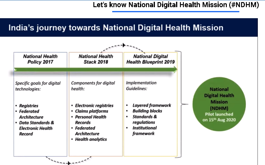 ಈ ಹೆಲ್ತ್ ಐ.ಡಿ ಹಾಗೂ ಡಿಜಿಟಲ್ ಹೆಲ್ತ್ ಯೋಜನೆಯ ಮೂಲ 2017ರ ರಾಷ್ಟ್ರೀಯ ಆರೋಗ್ಯ ನೀತಿ. (ಈ ನೀತಿಯ ಕರಡು ಕನ್ನಡದಲ್ಲಿ ಲಭ್ಯವಿಲ್ಲ). ಇದಾದನಂತರ 2020ರಲ್ಲಿ ಪೈಲಟ್ ಯೋಜನೆಯ ಆಧಾರದ ಮೇಲೆ ರಾಷ್ಟ್ರೀಯ ಡಿಜಿಟಲ್ ಹೆಲ್ತ್ ಯೋಜನೆಗೆ ಚಾಲನೆ ನೀಡಲಾಯಿತು. ಈಗ ಈ ಯೋಜನೆಯನ್ನು ಪೂರ್ಣ ಪ್ರಮಾಣದಲ್ಲಿ ಪ್ರಾರಂಭಿಸಲಾಗಿದೆ. ಈ ಯೋಜನೆಯ ಮುಖ್ಯ ಭಾಗಗಳು ಎಂದರೆ – ಹೆಲ್ತ್ ಐ.ಡಿ, ಹೆಲ್ತ್ ಕೇರ್ ಪ್ರೊಫ಼ೆಶನಲ್ಸ್ ರೆಜಿಸ್ಟ್ರಿ, ಹೆಲ್ತ್ ಕೇರ್ ಫ಼ೆಸಿಲಿಟೀಸ್ ರೆಜಿಸ್ಟ್ರಿ ಹಾಗು ಪರ್ಸನೆಲ್ ಹೆಲ್ತ್ ರೆಕಾರ್ಡ್ಸ್. ಅಂದರೆ, ಪ್ರತಿ ಪ್ರಜೆಗೆ 14 ಅಂಕಿಗಳ ಒಂದು ಪ್ರತ್ಯೇಕ ಐ.ಡಿ, ದೇಶದ ಎಲ್ಲಾ ವೈದ್ಯರ ಒಂದು ಆನ್ಲೈನ್ ರೆಜಿಸ್ಟ್ರಿ, ಎಲ್ಲಾ ಕ್ಲಿನಿಕ್/ಆಸ್ಪತ್ರೆ/ಲ್ಯಾಬ್ಗಳ ಒಂದು ಆನ್ಲೈನ್ ರೆಜಿಸ್ಟ್ರಿ – ಅತಿಮುಖ್ಯವಾಗಿ, ನಮ್ಮ ಆರೋಗ್ಯದ ಬಗ್ಗೆ, ನಮ್ಮ ಕುಟುಂಬದವರ ಆರೋಗ್ಯದ ಬಗ್ಗೆ ಸಂಪೂರ್ಣ ಮಾಹಿತಿ – ವ್ಯಕ್ತಿಯೊಬ್ಬ ಮಾಡಿಸಿಕೊಂಡ ಪ್ರತಿ ಲ್ಯಾಬ್ ಟೆಸ್ಟ್ ವರದಿ, ಪ್ರತಿ ಬಾರಿ ಕ್ಲಿನಿಕ್ಗೆ ಹೋದರೆ ವೈದ್ಯರು ನೀಡಿದ ಪ್ರಿಸ್ಕ್ರಿಪ್ಷನ್ – ಇತ್ಯಾದಿಯಾಗಿ ಇವುಗಳೆಲ್ಲವನ್ನೂ ಇನ್ನು ಮುಂದೆ ಈ ವ್ಯವಸ್ಥೆಯಲ್ಲಿ ಸಂಗ್ರಹಿಸಲಾಗುತ್ತದೆ.
