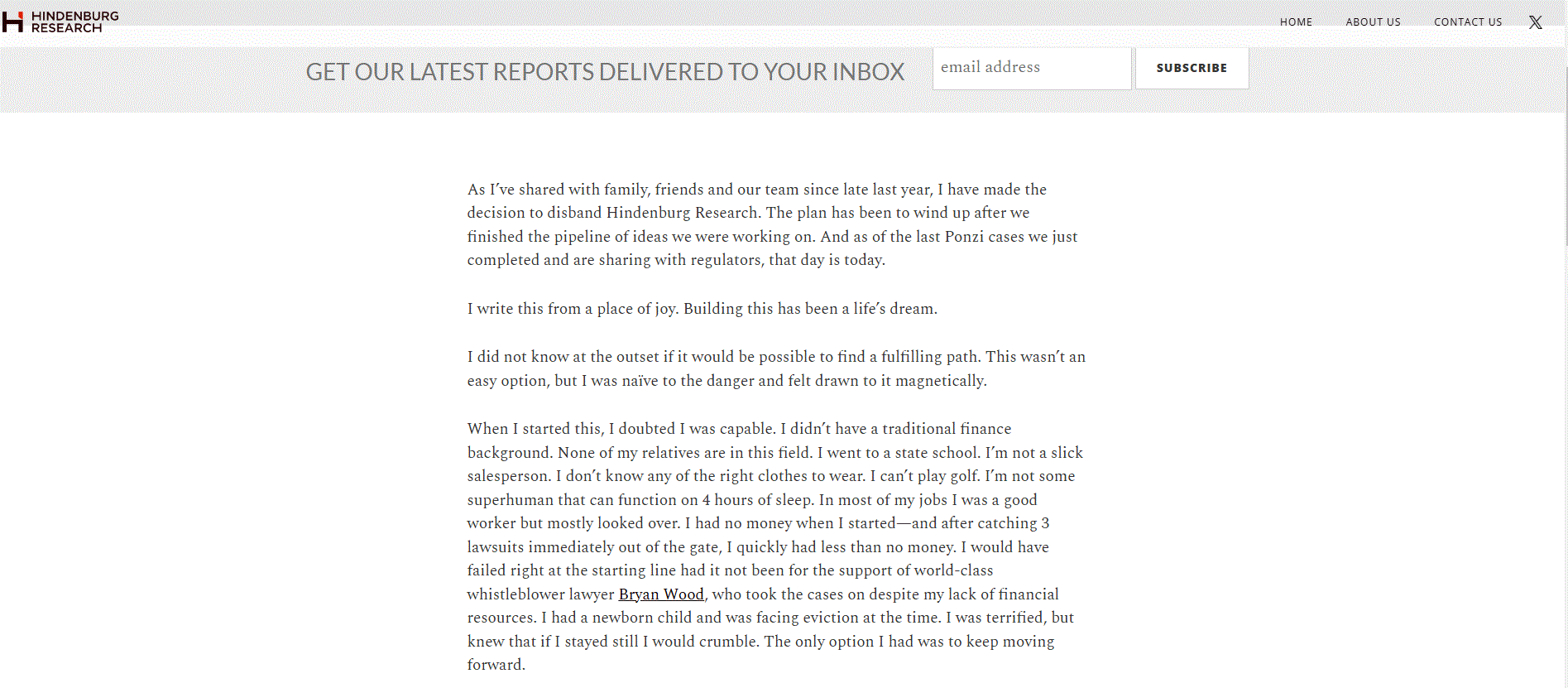 ಕಂಪನಿ ಮುಚ್ಚುವ ಪ್ರಕ್ರಿಯೆ ನಡೆಯುತ್ತಿದೆ. ಅದು ಪೂರ್ಣಗೊಂಡ ಬಳಿಕ ಕಾರ್ಯಾಚರಣೆ ಸ್ಥಗಿಗೊಳ್ಳಲಿದೆ ಎಂದು ಸಂಸ್ಥಾಪಕ ನೇಟ್ ಆಂಡರ್ಸನ್ ಹೇಳಿದ್ದಾರೆ.