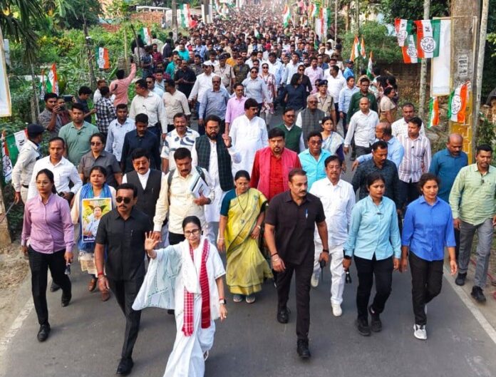 ಬೊಂಗಾವ್‌ನಲ್ಲಿ ನಡೆದ ಎಸ್‌ಐಆರ್ ವಿರೋಧಿ ರ‍್ಯಾಲಿಯನ್ನು ಉದ್ದೇಶಿಸಿ ಮಾತನಾಡಿದ ತೃಣಮೂಲ ಕಾಂಗ್ರೆಸ್ ನಾಯಕಿ, ಚುನಾವಣಾ ಆಯೋಗವು ಒಂದೇ ಒಂದು ಹೆಸರನ್ನು ಅಳಿಸುವ ಅಧಿಕಾರವನ್ನು ಹೊಂದಿಲ್ಲ;ನೀವು ಭಯಪಡಬೇಡಿ ಎಂದು ಜನರಿಗೆ ಭರವಸೆ ನೀಡಿದರು.