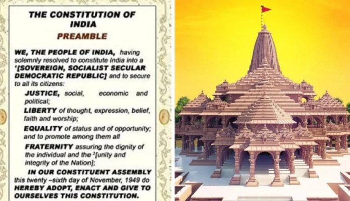 ಸಾವಿಂಧಾನಿಕ ಹುದ್ದೆಯಲ್ಲಿರುವ ಪ್ರಧಾನಿ ನರೇಂದ್ರ ಮೋದಿ ಸೇರಿದಂತೆ ಅನೇಕರು ಅಯೋಧ್ಯೆ ರಾಮಮಂದಿರ ಉದ್ಘಾಟನೆಯ ವಿಧಿ ವಿಧಾನಗಳ ನೇತೃತ್ವ ವಹಿಸಿದ್ದ ದಿನ ಭಾರತೀಯ ಚಿತ್ರರಂಗದ ಹಲವು ನಟ, ನಟಿಯರು ಸಂವಿಧಾನದ ಪೀಠಿಕೆಯನ್ನು ಹಂಚಿಕೊಂಡಿದ್ದರು.