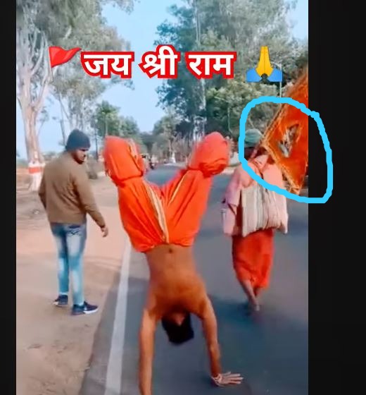 ವ್ಯಕ್ತಿಯೊಬ್ಬರು ತಲೆ ಕೆಳಗೆ ಕಾಲು ಮೇಲೆ ಮಾಡಿ ಉಲ್ಟ ನಡಿಗೆಯ ಮೂಲಕ ಅಯೋಧ್ಯೆ ರಾಮನ ದರ್ಶನಕ್ಕೆ ತೆರಳಿದ್ದಾರೆ ಎಂಬ ವಿಡಿಯೋ ಸಾಮಾಜಿಕ ಜಾಲತಾಣಗಳಲ್ಲಿ ವೈರಲ್ ಆಗಿದೆ.
