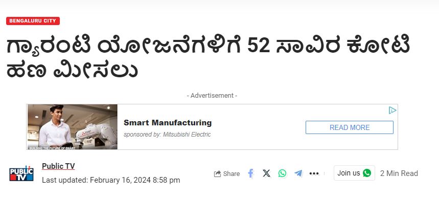 ರಾಜ್ಯ ಸರ್ಕಾರದ ಬಿಟ್ಟಿ ಭಾಗ್ಯಗಳಿಗೆ ಕೇಂದ್ರ ಹಣ ನೀಡಲ್ಲ ಎಂದು ನಿರ್ಮಲಾ ಸೀತಾರಾಮನ್ ಹೇಳಿದ್ದಾರೆ. ಈ ಬಗ್ಗೆ ಪ್ರತಿಕ್ರಿಯೆ ನೀಡಿರುವ ಕೃಷ್ಣಬೈರೇಗೌಡರು, “ಗ್ಯಾರಂಟಿ ಜೊತೆಗೆ ನಿವೃತ್ತಿ ವೇತನ ಸೇರಿ ರೂ.11,200 ಕೋಟಿ ಹಣವನ್ನೂ ರಾಜ್ಯ ಸರ್ಕಾರವೇ ನೀಡುತ್ತಿದೆ. ಈ ಹಣದ ಪೈಕಿ ಕೇಂದ್ರ ಸರ್ಕಾರದ ಪಾಲು ರೂ. 550 ಕೋಟಿ ಮಾತ್ರ ಎಂದಿದ್ದಾರೆ.