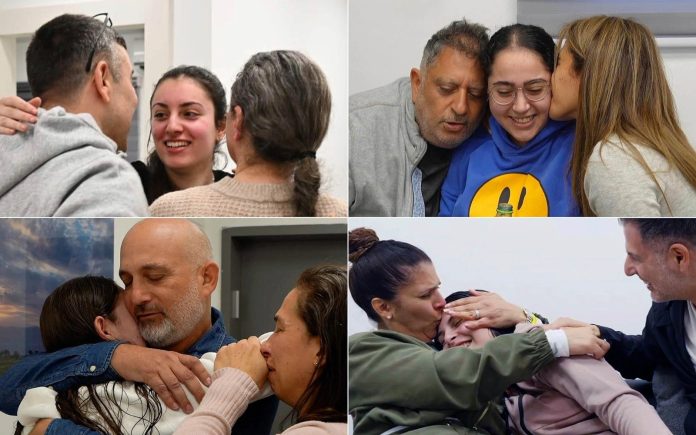 ಹಮಾಸ್ ಶನಿವಾರ ನಾಲ್ಕು ಮಹಿಳಾ ಇಸ್ರೇಲಿ ಸೈನಿಕರನ್ನು ಬಿಡುಗಡೆ ಮಾಡಿದ ನಂತರ, ಇಸ್ರೇಲ್ ರಕ್ಷಣಾ ಪಡೆಗಳು (ಐಡಿಎಫ್) 477 ದಿನಗಳ ಸೆರೆವಾಸದ ನಂತರ ಕುಟುಂಬ ಸದಸ್ಯರೊಂದಿಗೆ ಮತ್ತೆ ಒಂದಾಗುವ ವೀಡಿಯೊಗಳನ್ನು ಪೋಸ್ಟ್ ಮಾಡಿದೆ.