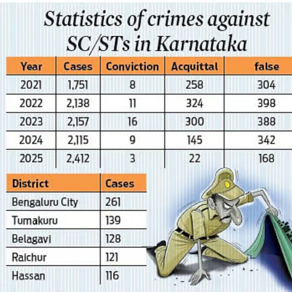 ಕರ್ನಾಟಕ: ಐದು ವರ್ಷಗಳಲ್ಲಿ ಎಸ್‌ಸಿ/ಎಸ್‌ಟಿಗಳ ಮೇಲಿನ ಅಪರಾಧಗಳು ಶೇ. 37.7 ರಷ್ಟು ಏರಿಕೆ; ಬೆಂಗಳೂರಿನದೇ ಅಗ್ರಸ್ಥಾನ