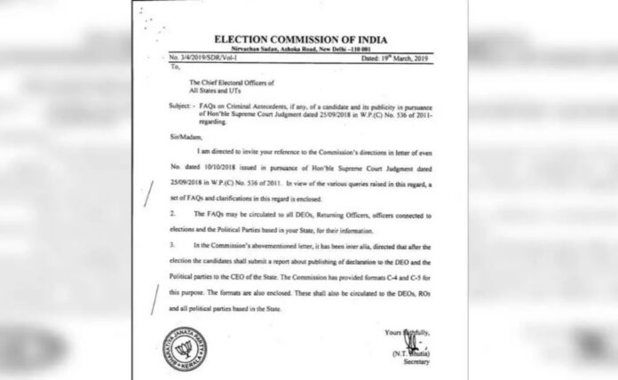 2019ರ ಆ ಪತ್ರವು ಅಭ್ಯರ್ಥಿಗಳ ಕ್ರಿಮಿನಲ್ ಹಿನ್ನೆಲೆಗೆ ಸಂಬಂಧಿಸಿದ ನಿಯಮಗಳನ್ನು ವಿವರಿಸಿತ್ತು. ಆ ಪತ್ರದ ಮೇಲೆ ಬಿಜೆಪಿ ಕೇರಳ ಘಟಕದ ಸೀಲ್ ಇತ್ತು ಮತ್ತು ಅದರ ಮೇಲೆ ಚುನಾವಣಾ ಆಯೋಗದ ಅಧಿಕಾರಿಯ ಸಹಿ ಕೂಡ ಇತ್ತು.
