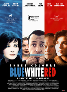 Blue (1993): ಫ್ರಾನ್ಸಿನ  ಪ್ರಸಿದ್ಧ ಸಂಗೀತ ಸಂಯೋಜಕನ ಪತ್ನಿ  ʼಜ್ಯೂಲಿʼ ತನ್ನ ಗಂಡ ಮತ್ತು ಐದು ವರ್ಷದ ಮಗಳ ಜೊತೆ ಕಾರಿನಲ್ಲಿ ಪ್ರಯಾಣ ಮಾಡುವಾಗ ಅಪಘಾತ ಸಂಭವಿಸಿ ಗಂಡ ಮತ್ತು ಮಗು ಸ್ಥಳದಲ್ಲೇ ಸಾವನ್ನಪ್ಪುತ್ತಾರೆ. ಈ ಘಟನೆ ʼಜ್ಯೂಲಿʼಯನ್ನ ಅಗಾಧವಾಗಿ ಘಾಸಿಗೊಳಿಸುತ್ತದೆ. ಪ್ರೀತಿ ಕೂಡ ಅಸಾಧ್ಯ ನೋವು ಉಂಟು ಮಾಡುತ್ತದೆ ಎಂದು ಈ ಎಲ್ಲಾ ನೆನಪುಗಳಿಂದ ಮತ್ತು ಬಂಧನಗಳಿಂದ ಸ್ವಾತಂತ್ರ್ಯ ಪಡೆಯಲು ಬಯಸಿ ತನ್ನ ಮನೆ ಆಸ್ತಿ ಎಲ್ಲವನ್ನು ಮತ್ತೊಬ್ಬರ ಹೆಸರಿಗೆ ವರ್ಗಾಯಿಸಿ, ಜ್ಯೂಲಿ ಅಜ್ಞಾತ ಸ್ಥಳಕ್ಕೆ ಅಂದರೆ ತನ್ನನ್ನೂ ಯಾರು ಗುರುತಿಸಲು ಸಾಧ್ಯವಾಗದ ಸ್ಥಳಕ್ಕೆ ತೆರಳುತ್ತಾಳೆ. ಜ್ಯೂಲಿ ಪ್ರಜ್ಞಾಪೂರ್ವಕವಾಗಿ ಎಷ್ಟೇ ಶ್ರಮವಹಿಸಿದರೂ, ನೆನಪು, ಪ್ರೀತಿ, ಮನುಷ್ಯ ಸಂಬಂಧ ಇವ್ಯಾವುಗಳಿಂದಲೂ ಹೊರಬರಲು ಮತ್ತು ಅವುಗಳಿಂದ ಪ್ರತ್ಯೇಕವಾಗಿ ಬದುಕಲು ಸಾಧ್ಯವಾಗುವುದೇ ಇಲ್ಲ. ಮನುಷ್ಯ ಈ ರೀತಿ ಎಲ್ಲಾ ಬಂಧನಗಳಿಂದ ದೂರವಾಗಿ ಸರ್ವ ಸ್ವತಂತ್ರವಾಗಿ ಬದುಕಲು ಸಾಧ್ಯವೇ?   ಹಾಗಿದ್ದಾಗ ಫ್ರೆಂಚ್ ಕ್ರಾಂತಿಯ ಉದಾತ್ತ ಘೋಷಣೆಯಾದ ʼಸ್ವಾತಂತ್ರ್ಯʼ ಮತ್ತು ನಮ್ಮ ದಿನ ನಿತ್ಯದ ಬದುಕಿನ ಸ್ವಾತಂತ್ರ್ಯದ ನಡುವೆ ಇರುವ ಸಂಘರ್ಷ ಯಾವ ರೀತಿಯದು, ಕಿಸ್ಲೋಸ್ಕಿ ಈ ಪ್ರಶ್ನೆಗಳನ್ನ ಪ್ರೇಕ್ಷಕನ ಅಲೋಚನೆಗೆ ಬಿಡುತ್ತಾನೆ.
