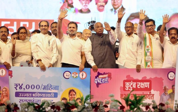 ಮಹಾರಾಷ್ಟ್ರದ ಆಢಳಿತರೂಡ ‘ಮಹಾಯುತಿ’ ಮೈತ್ರಿಕೂಟ ತನ್ನ ಪ್ರಣಾಳಿಕೆಯನ್ನು ಬಿಡುಗಡೆ ಮಾಡಿದ ಬೆನ್ನಲ್ಲೇ, ಪ್ರತಿಪಕ್ಷಗಳ ಒಕ್ಕೂಟ ಮಹಾ ವಿಕಾಸ್ ಅಘಾಡಿ (ಎಂವಿಎ) ಕೂಡ ಇಂದು (ನ.7) ಪ್ರಣಾಳಿಕೆ ಬಿಡುಗಡೆ ಮಾಡಿದ್ದು, ಕರ್ನಾಟಕದಂತೆ ಐದು ಗ್ಯಾರಂಟಿಗಳನ್ನು ಘೋಷಿಸಿದೆ.