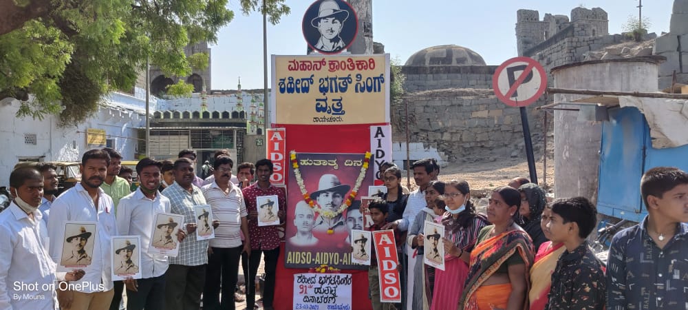 ಕರ್ನಾಟಕ ವಿದ್ಯಾರ್ಥಿ ಸಂಘಟನೆಯು ಮಂಡ್ಯದಲ್ಲಿ ಕ್ಯಾಂಡಲ್ ಮಾರ್ಚ್ ಮಾಡುತ್ತಾ, ಭಗತ್ ಸಿಂಗ್ ಅವರ ನೆನಪಿನಲ್ಲಿ ಕ್ರಾಂತಿಕಾರಿ ಗೀತೆಗಳನ್ನು ಹಾಡುತ್ತಾ ಜನರಲ್ಲಿ ಭಗತ್ ಸಿಂಗ್ ವಿಚಾರಗಳನ್ನು ತುಂಬುವ ಕೆಲಸ ಮಾಡಿದ್ದಾರೆ.