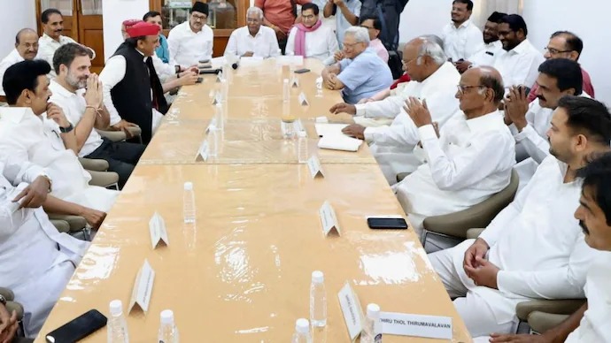 ಸಭೆಯಲ್ಲಿ ವಿರೋಧ ಪಕ್ಷದ ನಾಯಕರಾದ ತಮಿಳುನಾಡು ಮುಖ್ಯಮಂತ್ರಿ ಎಂ ಕೆ ಸ್ಟಾಲಿನ್ ಮತ್ತು ಡಿಎಂಕೆಯ ಟಿ ಆರ್ ಬಾಲು, ಜಾರ್ಖಂಡ್ ಮುಖ್ಯಮಂತ್ರಿ ಚಂಪೈ ಸೊರೆನ್ ಮತ್ತು ಜೆಎಂಎಂನ ಕಲ್ಪನಾ ಸೊರೆನ್, ಶರದ್ ಪವಾರ್ ಮತ್ತು ಎನ್‌ಸಿಪಿ-ಎಸ್‌ಪಿಯ ಸುಪ್ರಿಯಾ ಸುಳೆ, ಅಖಿಲೇಶ್ ಯಾದವ್ ಮತ್ತು ರಾಮ್ ಗೋಪಾಲ್ ಯಾದವ್ (ಎಸ್‌ಪಿ), ಅಭಿಷೇಕ್ ಬ್ಯಾನರ್ಜಿ (ಟಿಎಂಸಿ), ತೇಜಸ್ವಿ ಯಾದವ್ (ಆರ್‌ಜೆಡಿ), ಸಂಜಯ್ ರಾವತ್ ಮತ್ತು ಅರವಿಂದ್ ಸಾವಂತ್ (ಶಿವಸೇನೆ-ಯುಬಿಟಿ), ಒಮರ್ ಅಬ್ದುಲ್ಲಾ (ಜೆಕೆಎನ್‌ಸಿ), ಸೀತಾರಾಮ್ ಯೆಚೂರಿ (ಸಿಪಿಐ-ಎಂ), ಡಿ ರಾಜಾ (ಸಿಪಿಐ), ಸಂಜಯ್ ಸಿಂಗ್ ಮತ್ತು ರಾಘವ್ ಚಡ್ಡಾ (ಎಎಪಿ) ಮತ್ತು ಎನ್ ಕೆ ಪ್ರೇಮಚಂದ್ರನ್ (ಆರ್‌ಎಸ್‌ಪಿ) ಕೂಡ ಉಪಸ್ಥಿತರಿದ್ದರು.