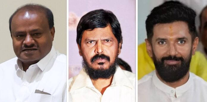 ರಾಮದಾಸ್ ಅಠಾವಳೆ (ಆರ್ಪಿಐಎ): ಅವರು ರಿಪಬ್ಲಿಕನ್ ಪಾರ್ಟಿ ಆಫ್ ಇಂಡಿಯಾದ ಮುಖ್ಯಸ್ಥರಾಗಿದ್ದಾರೆ. ಅಠವಳೆ, ಬಿಆರ್ ಅಂಬೇಡ್ಕರ್ ಸ್ಥಾಪಿಸಿದ ಪರಿಶಿಷ್ಟ ಜಾತಿಗಳ ಒಕ್ಕೂಟದಲ್ಲಿ ಬೇರುಗಳನ್ನು ಹೊಂದಿರುವ ಪಕ್ಷ. ಹಿಂದಿನ ಮೋದಿ ಸಂಪುಟದಲ್ಲಿ ಕೇಂದ್ರ ಸಾಮಾಜಿಕ ನ್ಯಾಯ ಖಾತೆ ರಾಜ್ಯ ಸಚಿವರಾಗಿದ್ದರು.