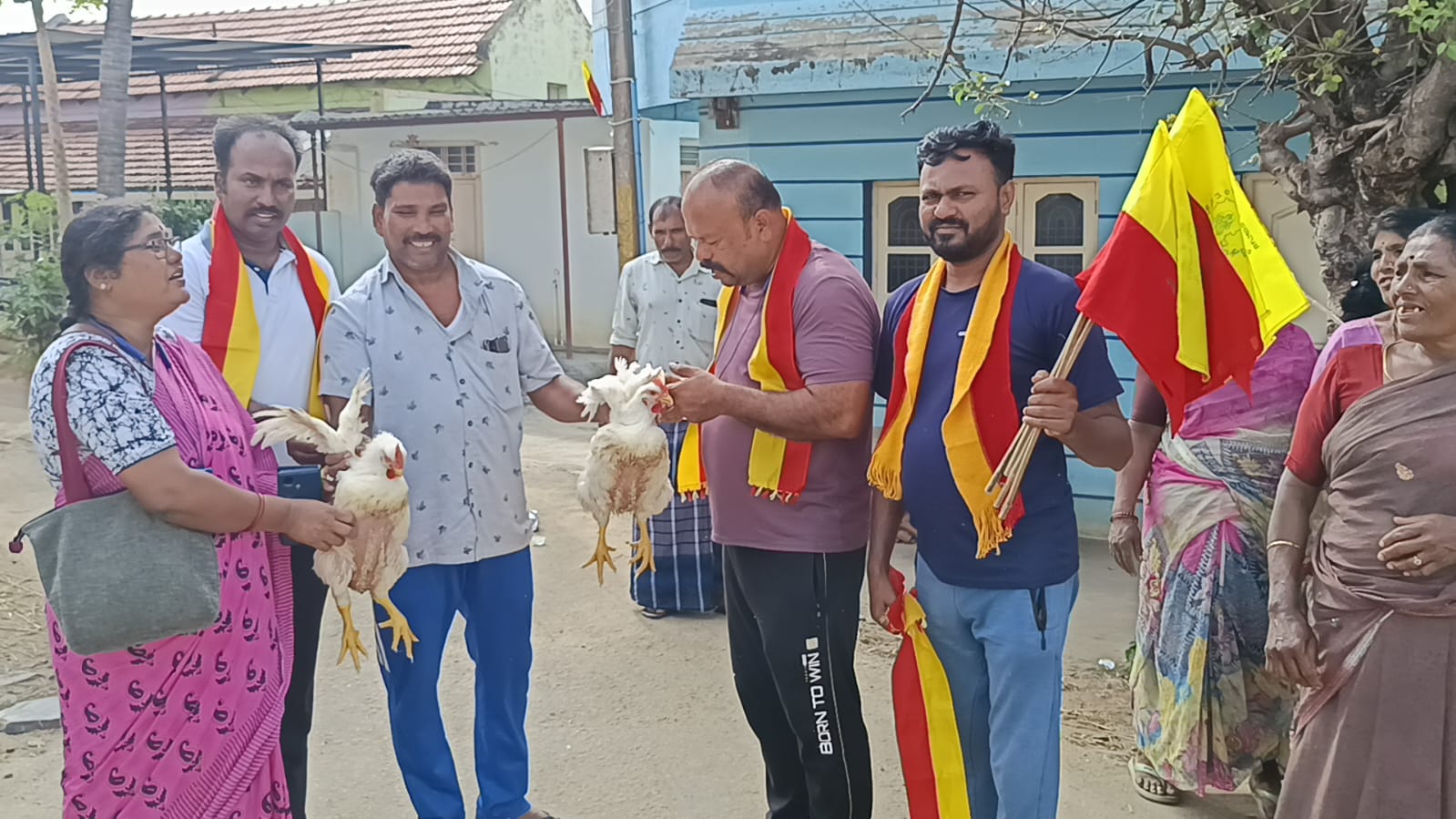 ‘ಅಂದು ವಿಚಾರ ಕ್ರಾಂತಿ, ಇಂದು ಆಹಾರ ಕ್ರಾಂತಿ’ ಎಂಬ ಘೋಷಣೆಯಡಿ ಮಂಡ್ಯದ ಹಳೆ ಬೂದನೂರಿನಲ್ಲಿ ಗ್ರಾಮ ಪಂಚಾಯತ್ ಮಾಜಿ ಅಧ್ಯಕ್ಷ ರವಿ ಅವರು ಕೋಳಿ ಸಂಗ್ರಹಕ್ಕೆ ಚಾಲನೆ ನೀಡಿದ್ದಾರೆ.