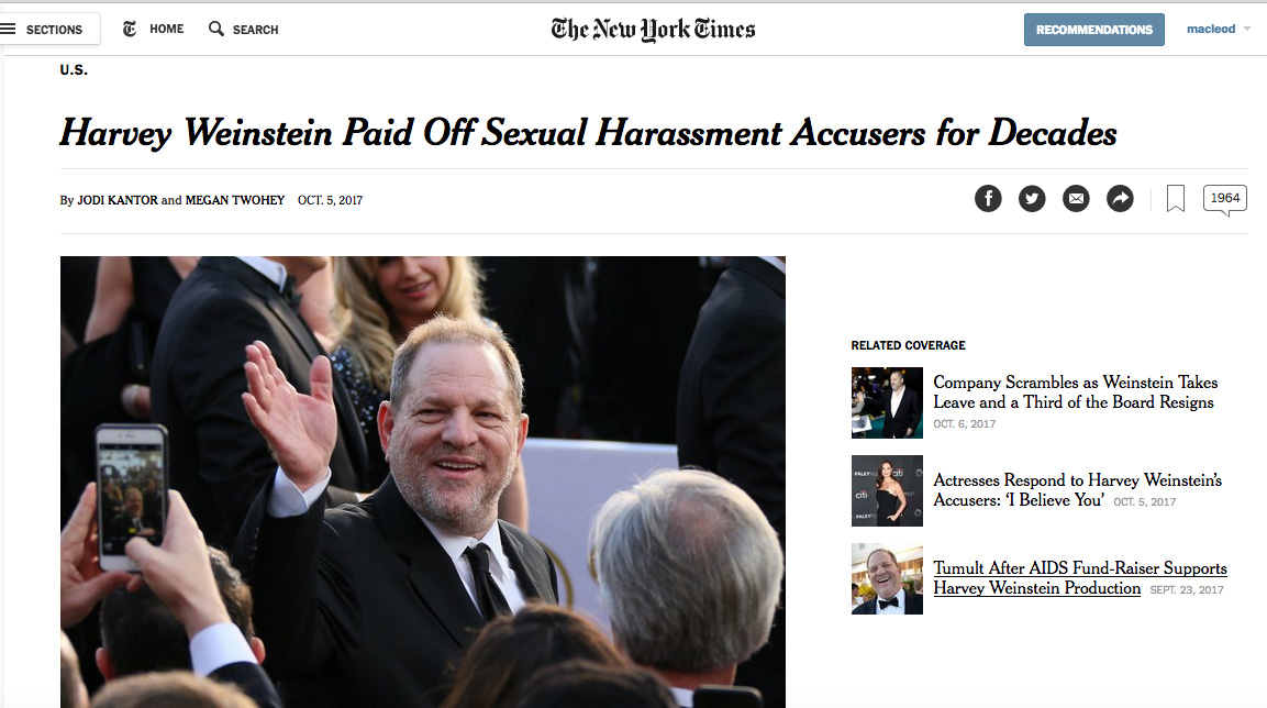 ತನಿಖಾ ಪತ್ರಿಕೋದ್ಯಮದ ಕಥೆಯಾಗಿ ಮತ್ತು ಪತ್ರಕರ್ತರ ಬಯೋಪಿಕ್ ರೂಪ ಪಡೆದಿರುವುದರಿಂದ, ಸಿನಿಮಾ ಸರಣಿ ಸೆಕ್ಷುಯಲ್ ಅಫೆಂಡರ್ ಹಾರ್ವಿ ವೇನ್‌ಸ್ಟೈನ್‌ನ ಬಗ್ಗೆ ಮತ್ತು ಆತನ ಪ್ರಭಾವದ ಬಗ್ಗೆ ವೀಕ್ಷಕರಿಗೆ ದೊಡ್ಡ ಚಿತ್ರಣವನ್ನು ಕಟ್ಟಿಕೊಡುವುದಿಲ್ಲ. ಆತನ ಪಾತ್ರವನ್ನು ಹಿನ್ನೆಲೆಯಲ್ಲೇ ಕಟ್ಟಿಕೊಡುವ ತಂತ್ರ ಬಹುಶಃ ಸಂತ್ರಸ್ತರ ನೋವು ಸಿಡಿದರೆ ಒಬ್ಬ ಪ್ರಭಾವಿಯನ್ನು ಕೂಡ ಮಣಿಸಲಬಲ್ಲದು ಎಂಬುದನ್ನು ಕಟ್ಟಿಕೊಡಲು ಮಾಡಿದ ಪ್ರಯತ್ನ ಎನಿಸುತ್ತದೆ. ಮಿರಾಮ್ಯಾಕ್ಸ್‌ನಂತಹ ಬೃಹತ್ ನಿರ್ಮಾಣ ಸಂಸ್ಥೆಯನ್ನು ಮುನ್ನಡೆಸುತ್ತಿದ್ದ, ’ಪಲ್ಪ್ ಫಿಕ್ಷನ್’ ಸೇರಿದಂತೆ ಹಲವು ಜನಪ್ರಿಯ ಸಿನಿಮಾಗಳನ್ನು ನಿರ್ಮಿಸಿ ಹಲವು ಆಸ್ಕರ್ ಪ್ರಶಸ್ತಿಗಳನ್ನು ಗಳಿಸಿದ್ದ ವ್ಯಕ್ತಿ ಹಾರ್ವಿ; ಯುಎಸ್‌ಎನಲ್ಲಿ ಹಿಲರಿ ಕ್ಲಿಂಟನ್ ಸೇರಿದಂತೆ ಡೆಮಾಕ್ರಟ್ ಪಕ್ಷದ ಪ್ರಭಾವಿಗಳ ಜೊತೆಗೆ ಗುರುತಿಸಿಕೊಂಡವನು; ಸುಮಾರು ಮೂರು ದಶಕಗಳ ಕಾಲ ಹಲವು ಯುವ ನಟಿಯರು ಮತ್ತು ಕಿರಿಯ ಸಹೋದ್ಯೋಗಿಗಳಿಗೆ ನಿರಂತರ ಲೈಂಗಿಕ ಕಿರುಕುಳಗಳ ನೀಡಿ, ಸುಮಾರು 12 ಪ್ರಕರಣಗಳಲ್ಲಿ ಹಣಕಾಸಿನ ಸೆಟಲ್‌ಮೆಂಟ್ ಮಾಡಿ, ಅವರು ತಮ್ಮ ಕಥೆಯನ್ನು ಯಾರಿಗೂ ಹೇಳಿಕೊಳ್ಳದಂತೆ (ವೈದ್ಯರ ಬಳಿ ಕೂಡ) ನಿರ್ಬಂಧ ಹೇರಿ ಒಪ್ಪಂದಗಳನ್ನು ಮಾಡಿಕೊಂಡು ಬಚಾವಾಗುತ್ತಿದ್ದ ಅಪರಾಧಿ. ಹಲವಾರು ಬಾರಿ ಈತನ ವಿಷಯ ವರದಿಯಾಗುವ ಹಂತಕ್ಕೆ ಬಂದಾಗ ತನ್ನ ಪ್ರಭಾವ ಬಳಸಿ ಆ ವರದಿಗಳನ್ನು ಸಾಯಿಸುತ್ತಿದ್ದ ವ್ಯಕ್ತಿ. ಹೀಗೆ ತನ್ನ ಅಧಿಕಾರವನ್ನು ಎಲ್ಲೆ ಮೀರಿ ದುರುಪಯೋಗಮಾಡಿಕೊಂಡು ಅದನ್ನು ತನ್ನ ಲೋಲುಪತೆಗೆ ಬಳಸಿಕೊಳ್ಳುತ್ತಿದ್ದ ವ್ಯಕ್ತಿಯ ಪ್ರಭಾವದ ಬಗ್ಗೆ ಸಿನಿಮಾದಲ್ಲಿಯೇ ಒಂದು ಕಡೆ ಸಂತ್ರಸ್ತೆಯೊಬ್ಬಳು ಹೇಳುವ ಮಾತುಗಳು ಹೀಗಿವೆ: ’ನಾನು 28 ವರ್ಷದ ಮಹಿಳೆ ವೃತ್ತಿಪರ ಬದುಕು ಕಟ್ಟಿಕೊಳ್ಳಲು ಪ್ರಯತ್ನಿಸುತ್ತಿದ್ದೆ. ಹಾರ್ವಿ ವೇನ್‌ಸ್ಟೈನ್ 64 ವರ್ಷದವ, ಜಗತ್‌ಪ್ರಖ್ಯಾತ ಮತ್ತು ಅದು ಅವನ ಕಂಪನಿಯಾಗಿತ್ತು. ಪವರ್ ಸಮತೋಲನ ಹೀಗಿತ್ತು; ನಾನು:0, ಹಾರ್ವಿ ವೇನ್‌ಸ್ಟೈನ್:10.