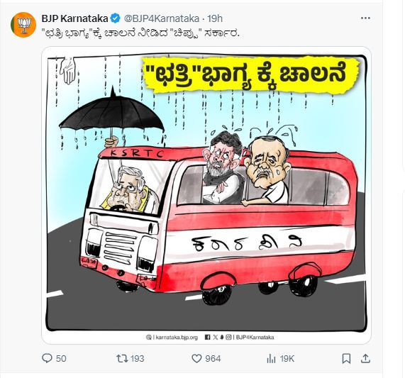 “ಕೆಲವರಿಗೆ ಕಣ್ಣಿರುತ್ತದೆ. ಆದರೆ, ನೋಡಲು ಸಾಧ್ಯವಾಗದ ಸ್ಥಿತಿ. ತಲೆ ಇರುತ್ತದೆ ಬುದ್ದಿಯನ್ನು ಸರಿಯಾಗಿ ಉಪಯೋಗಿಸಲಾಗದ ಪರಿಸ್ಥಿತಿ. ಇವೆಲ್ಲವೂ ಅನ್ವಯಿಸುವುದು ಬಸನಗೌಡ ಪಾಟೀಲ್ ಯತ್ನಾಳ್, ಆರ್. ಅಶೋಕ್ ಮತ್ತು ಡಾ.ಸಿಎನ್ ಅಶ್ವತ್ಥ್ ನಾರಾಯಣ ಅವರಿಗೆ. ಬಿಜೆಪಿಯವರು ಕಣ್ಣು, ತಲೆ ಯಾವುದೂ ಸರಿಯಾಗಿ ಕನೆಕ್ಟ್ ಆಗದೆ ಇರೋ ಪಂಡಿತ ಪುತ್ರರು ಎಂಬುವುದನ್ನು ಬಿಡಿಸಿ ಹೇಳಬೇಕಿಲ್ಲ. ಈ ವಿಡಿಯೋ ನೋಡಿದರೆ ಚಾಲಕ ಹಿಡಿದಿರುವ ಕೊಡೆ ಮೇಲೆ ಒಂದೇ ಒಂದು ಹನಿ ನೀರು ಕಾಣುತ್ತಿಲ್ಲ. ಅದನ್ನು ನೋಡುವ, ಯೋಚಿಸುವ ವ್ಯವಧಾನ, ಬುದ್ದಿಯಾದರೂ ಬೇಡವೇ ಇವರಿಗೆ ?”