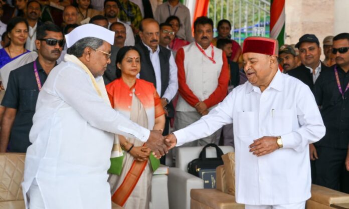 ಬೆಂಗಳೂರಿನ ಮಾಣಿಕ್ ಷಾ ಪರೇಡ್ ಮೈದಾನದಲ್ಲಿ ಸೋಮವಾರ (ಜ.26) ಗಣರಾಜ್ಯೋತ್ಸವ ಪ್ರಯುಕ್ತ ರಾಷ್ಟ್ರ ಧ್ವಜಾರೋಹಣ ನೆರವೇರಿಸಿ, ರಾಜ್ಯದ ಜನತೆಯನ್ನು ಉದ್ದೇಶಿಸಿ ಅವರು ಭಾಷಣ ಮಾಡಿದರು. ರಾಜ್ಯ ಸರ್ಕಾರ ಸಿದ್ದಪಡಿಸಿಕೊಟ್ಟ ಭಾಷಣವನ್ನು ಯಥಾವತ್ ಓದಿದರು.