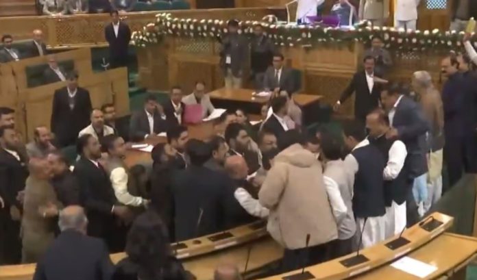 ಸಂಸದ ಇಂಜಿನಿಯರ್ ರಶೀದ್ ಅವರ ಸಹೋದರ ಹಾಗೂ ಅವಾಮಿ ಇತ್ತೆಹಾದ್ ಪಕ್ಷದ ಶಾಸಕ ಖುರ್ಷಿದ್ ಅಹ್ಮದ್ ಶೇಖ್ ಅವರು ಆರ್ಟಿಕಲ್ 370 ಕುರಿತು ಬ್ಯಾನರ್ ಪ್ರದರ್ಶಿಸಿದಕ್ಕೆ ಬಿಜೆಪಿ ಶಾಸಕರು ತೀವ್ರ ವಿರೋಧ ವ್ಯಕ್ತಪಡಿಸಿದ್ದು, ಶಾಸಕರ ನಡುವೆ ನೂಕಾಟ-ತಳ್ಳಾಟ ನಡೆದಿದೆ.