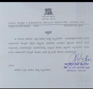 “ಈ ಮೂಲಕ ಠಾಣೆಯ ಎಲ್ಲಾ ಅಧಿಕಾರಿ ಮತ್ತು ಸಿಬ್ಬಂದಿಗಳಿಗೆ ಸೂಚಿಸುವುದೇನೆಂದರೆ, ಹಿರಿಯ ಅಧಿಕಾರಿಗಳಿಗೆ ಸೆಲ್ಯೂಟ್ ಮಾಡಿ ರಾಷ್ಟ್ರೀಯ ಭಾವನೆಯ ಅಂಗವಾಗಿ ಜೈ ಹಿಂದ್ ಹೇಳುವ ಹೊಸ ಪದ್ದತಿಯನ್ನು ರೂಡಿಸಿಕೊಳ್ಳಲು ಸೂಚಿಸಲಾಗಿದ್ದು, ನಿಮ್ಮಿಂದ ಮೇಲಿನ ರ್ಯಾಂಕ್ನ ಸಿಬ್ಬಂದಿಗಳಿಗೆ ಹಾಗೂ ಹಿರಿಯ ಅಧಿಕಾರಿಗಳಿಗೆ ಸೆಲ್ಯೂಟ್ ಮಾಡಿದ ನಂತರ ಜೈ ಹಿಂದ್ ಹೇಳಲು ಸೂಚಿಸಲಾಗಿದೆ” ಎಂದು ಜೂನ್ 05 ಸುತ್ತೋಲೆಯಲ್ಲಿ ತಿಳಿಸಲಾಗಿದೆ.